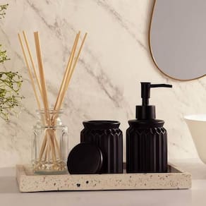 Elegância e sofisticação definem as bandejas retangulares de mármore, as bandejas Lyor são peças que combinam funcionalidade com um design estético refinado. Com dimensões de 25cm x 10cm x 2cm, estas bandejas são ideais para organizar itens decorativos, como velas, acessórios de banheiro, suporte elegante para itens de cuidados pessoais, como sabonetes, perfumes, aromatizadores. Tornando as bandejas peças versáteis para sua decoração, criando uma superfície única e decorativa. A Lyor se dedica a oferecer produtos que combinam qualidade superior com design inovador, focando em materiais nobres e acabamentos meticulosos para garantir que cada peça seja não apenas útil, mas também um complemento decorativo valioso. As bandejas são feitas de mármore Terrazo, um tipo de mármore composto por pequenos fragmentos de pedras naturais e de outros materiais.
