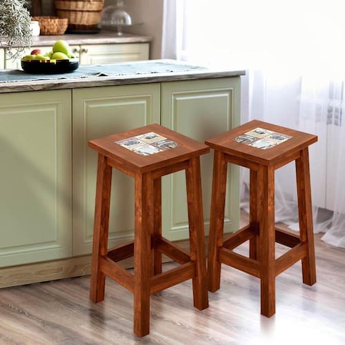 Apresentamos a Banqueta Durável com Acabamento Rústico, feita em madeira maciça para resistência e longevidade. Seu acabamento encerado realça a beleza natural da madeira. Com assento em detalhe de cerâmica e pés robustos, oferece estabilidade e fácil limpeza. Uma escolha ideal para ambientes que valorizam durabilidade e beleza rústica.