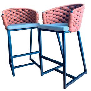2 Banquetas Bali em Alumínio e Trico Náutica Trama - Bege Médio