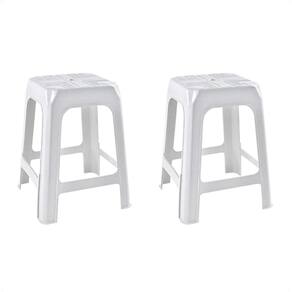 2 Banquetas Banco Plástico Resistente Branco Empilhável 46Cm