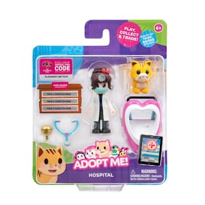 Conheça a nova linha de brinquedos do popular jogo online Adopt Me! Cada conjunto vem com 2 figuras, acessórios e 1 código de item virtual para resgatar. Comece já a sua coleção. No conjunto Sorveteria, ajude Elsa a servir sorvetes. Já no conjunto Hospital ajude o Dr. Heart a cuidar do Ginger Cat.