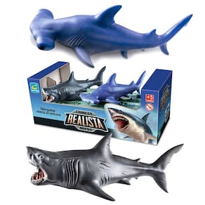 2 Brinquedo Realistas Mini Tubarão e Tubarão Martelo 13cm