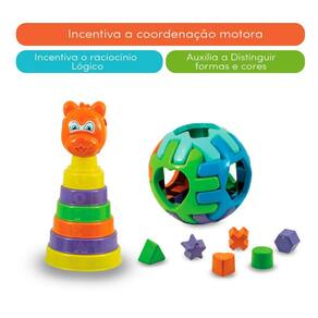 Conheça nosso ursinho com 06 anéis coloridos para empilhar e uma bola cheia de surpresas, com 6 formas geométricas diferentes É a combinação perfeita de aprendizado e brincadeira. Vamos transformar cada momento em uma aventura divertida