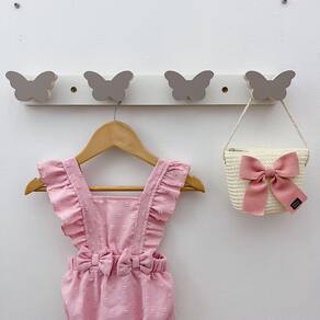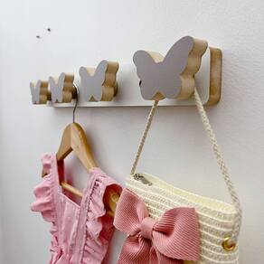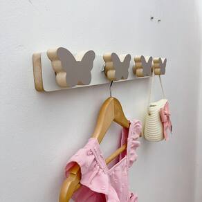 2 Cabideiros parede infantil pendurador roupas Borboleta - Cor: Cinza