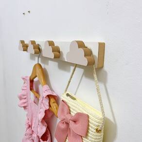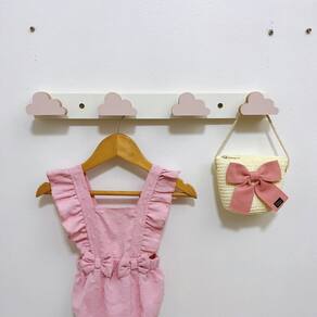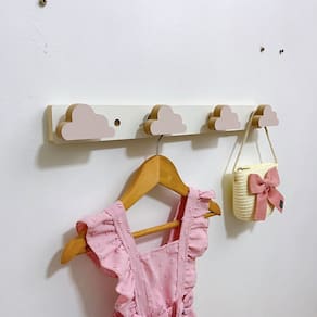 2 Cabideiros parede infantil pendurador roupas cabide nuvem - Cor: Rosa