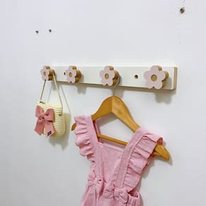 Dimensão do cabideiro: Base parede: 45cm largura X 5cm altura X 1,5cm profundidade; Gancho: 6cm largura X 5cm altura X 1,5cm profundidade; Suporte para gancho: 3cm largura X 1,5cm profundidade; Material: MDF Melamínico 15 mm com bordas cru (sem pintura).