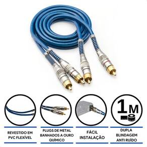 2 Cabo RCA Prime Plug 1 Metro 5mm Transparente Azul Metal