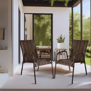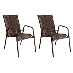 2 Cadeira Varanda Jardim Tropical Junco Fibra Sintética Varanda Lazer Cor:chocolate