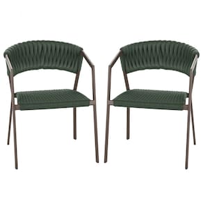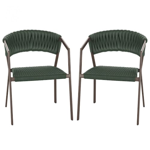 2 Cadeiras Atenas Tricô Náutico e Alumínio com Proteção UV para Varanda, Cozinha, Área, Jardim - Pintura Marrom - Verde