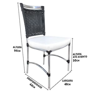 Cadeira: 50cm ALT até assento x 94cm altura total x 48cm LARG x 44cm PROF