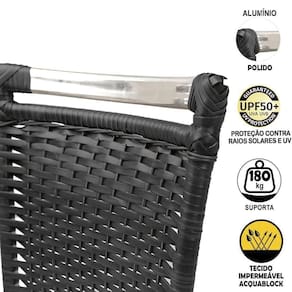 - Estrutura: Alumínio, não enferruja, não descasca;