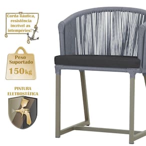 Descubra a Elegancia e Durabilidade da Cadeira Noronha. Combinando estilo e resistencia, esta cadeira traz o melhor do design contemporaneo em aluminio com micro pintura e acabamento em corda nautica. O estofado impermeavel completa o conforto e a funcionalidade, tornando-a ideal para ambientes externos e internos. Qualidade e elegancia que transformam qualquer espaco. Adicione um toque de sofisticacao e conforto ao seu espaco com a cadeira Noronha.