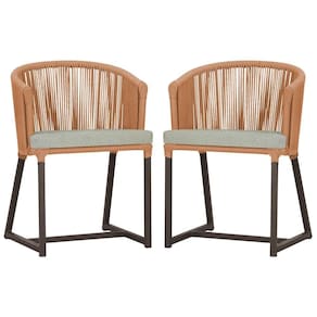 2 Cadeiras De Jantar Noronha Marrom Corda Náutica E3 Trama Terra Cota