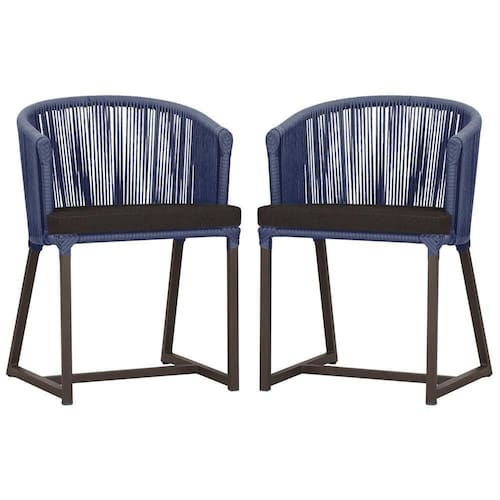 2 Cadeiras De Jantar Noronha Marrom Corda Náutica E9 Trama Azul