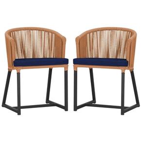 2 Cadeiras De Jantar Noronha Preta Corda Náutica E10 Trama Terra Cota
