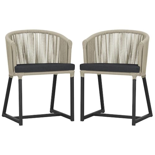 2 Cadeiras De Jantar Noronha Preta Corda Náutica E11 Trama Rami