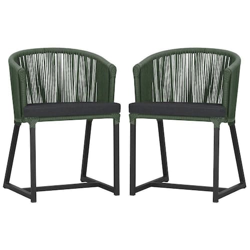 2 Cadeiras De Jantar Noronha Preta Corda Náutica E11 Trama Verde
