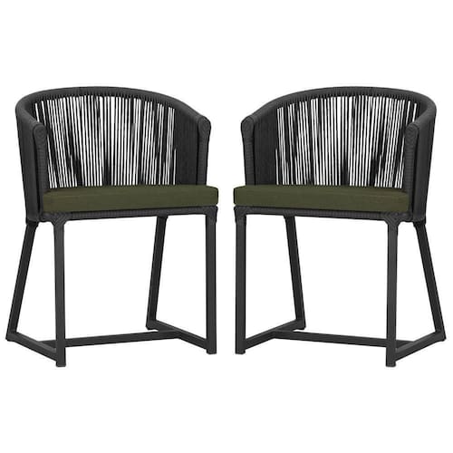 2 Cadeiras De Jantar Noronha Preta Corda Náutica E13 Trama Preto