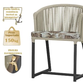Descubra a Elegancia e Durabilidade da Cadeira Noronha. Combinando estilo e resistencia, esta cadeira traz o melhor do design contemporaneo em aluminio com micro pintura e acabamento em corda nautica. O estofado impermeavel completa o conforto e a funcionalidade, tornando-a ideal para ambientes externos e internos. Qualidade e elegancia que transformam qualquer espaco. Adicione um toque de sofisticacao e conforto ao seu espaco com a cadeira Noronha.