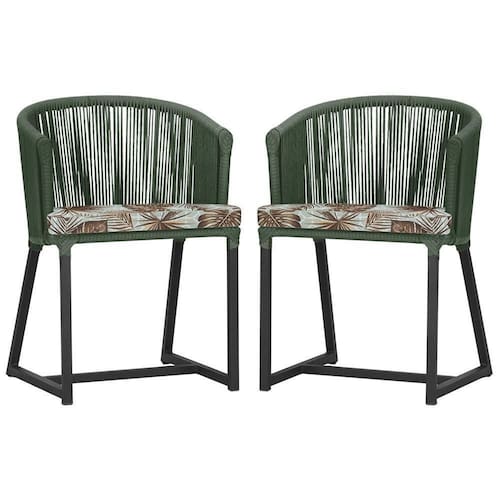 2 Cadeiras De Jantar Noronha Preta Corda Náutica E6 Trama Verde