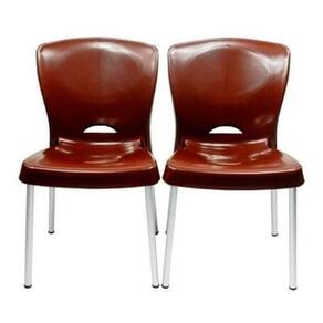 2 cadeiras de plástico com pés de alumínio forte 140 kg Cor do estofamento: marrom Cor da estrutura: prateado Temos outras de cores, branco, amarelo, vermelho e marrom. cada uma com preço diferente, consulte antes da compra Medidas: 41,5 x 41,5 x 84cm Peso 2,73 kg Suporta até 140 kg Cores: marrom. Aconselha-se a limpar com pano macio e umedecido apenas com água.