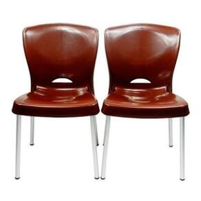 2 cadeiras de plástico com pés de alumínio forte 140 kg Cor do estofamento: marrom Cor da estrutura: prateado Temos outras de cores, branco, amarelo, vermelho e marrom. cada uma com preço diferente, consulte antes da compra