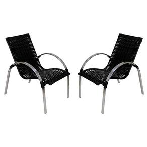 2 Cadeiras Garden Em Alumínio Polido Para área Externa Fibra Sintética Acesse Móveis Preto