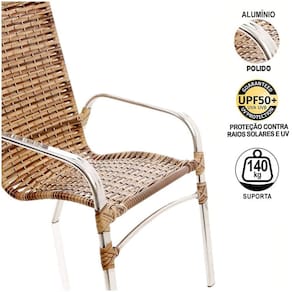 Jogo de Cadeiras Emily - TRAMA Ideal para área externa, este kit compõe qualquer ambiente, com um designer moderno e leve, garante conforto e praticidade.Itens inclusos: 2 Cadeiras.- Cadeiras fabricadas em alumínio polido e revestida em fibra sintética.Mais leve e resistente do que o Ferro, o Alumínio também pode ser molhado, pois não enferruja, a durabilidade cerca de 8 a 10 anos.Ambiente: Interno e externo, pode ficar exposto ao sol e chuva.Nossos produtos são de altíssima qualidade, leve e com design moderno, garantindo assim conforto e praticidade para seu bem-estar.Essa característica oferece resistência suficiente para o móvel ser utilizado em decorações de ambientes externos.Combinação em vários ambientes com traços modernos e clássicos, para todos os gostos!ALUMÍNIO MAIS RESISTENTE DO QUE FERRO, NÃO ENFERRUJA E MAIOR DURABILIDADE!Especificação do produto.- Estrutura: Alumínio, não enferruja;- Solda: Solda TIG, de alta resistência,- Acabamento: Fibra sintética com UV Protection;Fibra Sintética especial - Sua proteção UV proporciona maior durabilidade, resistente ao Sol e Chuva com proteção UV, a fibra sintética da Trama /UP Mobille é produzida com materiais de altíssima qualidade.Peso Máximo indicado: 140 Kg.GARANTIA: 1 ano de fábrica.FABRICANTE: TRAMA Nossos produtos são ideias para decorar ambientes clássicos e modernos, interno e externo como: Cozinha, Sala, Quarto, Varanda, Sacada, Edícula, Área de Piscina, Jardim, Área de lazer, Festa, Reunião, Churrasco, Área Gourmet, Recepção, Sala de espera, Sala de Filmes entre outros.Fácil de Limpar Utilize Sabão Neutro para a limpeza das fibras e estruturas.Passe um pouco com um pano macio, logo em seguida, passe outro pano macio, porém seco. Deixando assim, com o brilho novamente!.....TGA - Você também pode buscar por - Conjunto de área, cadeira de alumínio, cadeira de área, cadeira para piscina, cadeira para área de piscina, cadeira pintada, cadeira com pintura, cadeira para sacada, cadeira para sol, cadeira para varanda, cadeira gourmet, cadeira artesanal, kit de cadeiras, combo de cadeiras, cadeiras artesanais, cadeiras de fibra, cadeira de junco, cadeiras de móveis artesanais, cadeira sintética, jogo de cadeiras, cadeira resistente, cadeira vime, trama móveis, tramar cadeiras, mesa alta, mesa com tampo, mesa ripado, ombrelone, ombrelone central, para área de festa, sombreiro, guarda sol.