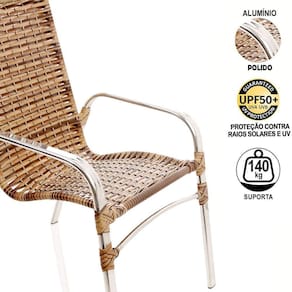 Jogo de Cadeiras Emily - TRAMA Ideal para área externa, este kit compõe qualquer ambiente, com um designer moderno e leve, garante conforto e praticidade.Itens incls: 2 Cadeiras.- Cadeiras fabricadas em alumínio polido e revestida em fibra sintética.Mais leve e resistente do que o Ferro, o Alumínio também pode ser molhado, pois não enferruja, a durabilidade cerca de 8 a 10 anos.Ambiente: Interno e externo, pode ficar exposto ao sol e chuva.Nossos produtos são de altíssima qualidade, leve e com design moderno, garantindo assim conforto e praticidade para seu bem-estar.Essa característica oferece resistência suficiente para o móvel ser em decorações de ambientes externos.Combinação em vários ambientes com traços modernos e clássicos, para todos os gostos!ALUMÍNIO MAIS RESISTENTE DO QUE FERRO, NÃO ENFERRUJA E MAIOR DURABILIDADE!Especificação do produto.- Estrutura: Alumínio, não enferruja;- Solda: Solda TIG, de alta resistência,- Acabamento: Fibra sintética com UV Protection;Fibra Sintética especial - Sua proteção UV proporciona maior durabilidade, resistente ao Sol e Chuva com proteção UV, a fibra sintética da Trama /UP Mobille é produzida com materiais de altíssima qualidade.Peso Máximo indicado: 140 Kg.GARANTIA: 1 ano de fábrica.FABRICANTE: TRAMA Nossos produtos são ideias para decorar ambientes clássicos e modernos, interno e externo como: Cozinha, Sala, Quarto, Varanda, Sacada, Edícula, Área de Piscina, Jardim, Área de lazer, Festa, Reunião, Churrasco, Área Gourmet, Recepção, Sala de espera, Sala de Filmes entre outros.Fácil de Limpar Utilize Sabão Neutro para a limpeza das fibras e estruturas.Passe um pouco com um pano macio, logo em seguida, passe outro pano macio, porém seco. Deixando assim, com o brilho novamente!.....TGA - Você também pode buscar por - Conjunto de área, cadeira de alumínio, cadeira de área, cadeira para piscina, cadeira para área de piscina, cadeira pintada, cadeira com pintura, cadeira para sacada, cadeira para sol, cadeira para varanda, cadeira gourmet, cadeira artesanal, kit de cadeiras, combo de cadeiras, cadeiras artesanais, cadeiras de fibra, cadeira de junco, cadeiras de móveis artesanais, cadeira sintética, jogo de cadeiras, cadeira resistente, cadeira vime, trama móveis, tramar cadeiras, mesa alta, mesa com tampo, mesa ripado, ombrelone, ombrelone central, para área de festa, sombreiro, guarda sol.