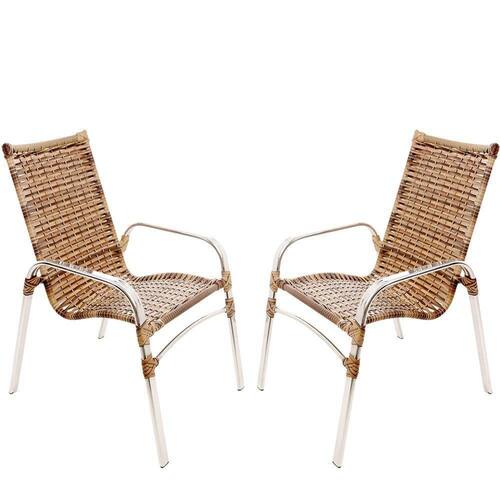 2 Cadeiras Emily Cor Cappuccino, Estrutura Alumínio Polido, área Interna E Externa - Marrom