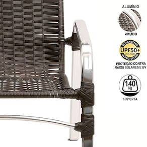 Jogo de Cadeiras Emily - TRAMA Ideal para área externa, este kit compõe qualquer ambiente, com um designer moderno e leve, garante conforto e praticidade.Itens inclusos: 2 Cadeiras.- Cadeiras fabricadas em alumínio polido e revestida em fibra sintética.Mais leve e resistente do que o Ferro, o Alumínio também pode ser molhado, pois não enferruja, a durabilidade cerca de 8 a 10 anos.Ambiente: Interno e externo, pode ficar exposto ao sol e chuva.Nossos produtos são de altíssima qualidade, leve e com design moderno, garantindo assim conforto e praticidade para seu bem-estar.Essa característica oferece resistência suficiente para o móvel ser utilizado em decorações de ambientes externos.Combinação em vários ambientes com traços modernos e clássicos, para todos os gostos!ALUMÍNIO MAIS RESISTENTE DO QUE FERRO, NÃO ENFERRUJA E MAIOR DURABILIDADE!Especificação do produto.- Estrutura: Alumínio, não enferruja;- Solda: Solda TIG, de alta resistência,- Acabamento: Fibra sintética com UV Protection;Fibra Sintética especial - Sua proteção UV proporciona maior durabilidade, resistente ao Sol e Chuva com proteção UV, a fibra sintética da Trama /UP Mobille é produzida com materiais de altíssima qualidade.Peso Máximo indicado: 140 Kg.GARANTIA: 1 ano de fábrica.FABRICANTE: TRAMA Nossos produtos são ideias para decorar ambientes clássicos e modernos, interno e externo como: Cozinha, Sala, Quarto, Varanda, Sacada, Edícula, Área de Piscina, Jardim, Área de lazer, Festa, Reunião, Churrasco, Área Gourmet, Recepção, Sala de espera, Sala de Filmes entre outros.Fácil de Limpar Utilize Sabão Neutro para a limpeza das fibras e estruturas.Passe um pouco com um pano macio, logo em seguida, passe outro pano macio, porém seco. Deixando assim, com o brilho novamente!.....TGA - Você também pode buscar por - Conjunto de área, cadeira de alumínio, cadeira de área, cadeira para piscina, cadeira para área de piscina, cadeira pintada, cadeira com pintura, cadeira para sacada, cadeira para sol, cadeira para varanda, cadeira gourmet, cadeira artesanal, kit de cadeiras, combo de cadeiras, cadeiras artesanais, cadeiras de fibra, cadeira de junco, cadeiras de móveis artesanais, cadeira sintética, jogo de cadeiras, cadeira resistente, cadeira vime, trama móveis, tramar cadeiras, mesa alta, mesa com tampo, mesa ripado, ombrelone, ombrelone central, para área de festa, sombreiro, guarda sol.
