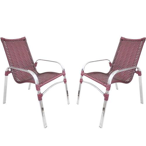 2 Cadeiras Emily Cor Vinho Dark, Estrutura Alumínio Polido, área Interna E Externa, área Gourmet, Varanda, Jardim