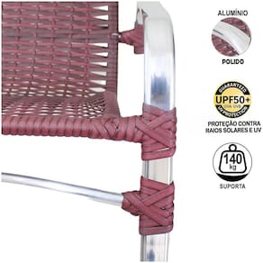 Jogo de Cadeiras Emily - TRAMA Ideal para área externa, este kit compõe qualquer ambiente, com um designer moderno e leve, garante conforto e praticidade.Itens inclusos: 2 Cadeiras.- Cadeiras fabricadas em alumínio polido e revestida em fibra sintética.Mais leve e resistente do que o Ferro, o Alumínio também pode ser molhado, pois não enferruja, a durabilidade cerca de 8 a 10 anos.Ambiente: Interno e externo, pode ficar exposto ao sol e chuva.Nossos produtos são de altíssima qualidade, leve e com design moderno, garantindo assim conforto e praticidade para seu bem-estar.Essa característica oferece resistência suficiente para o móvel ser utilizado em decorações de ambientes externos.Combinação em vários ambientes com traços modernos e clássicos, para todos os gostos!ALUMÍNIO MAIS RESISTENTE DO QUE FERRO, NÃO ENFERRUJA E MAIOR DURABILIDADE!Especificação do produto.- Estrutura: Alumínio, não enferruja;- Solda: Solda TIG, de alta resistência,- Acabamento: Fibra sintética com UV Protection;Fibra Sintética especial - Sua proteção UV proporciona maior durabilidade, resistente ao Sol e Chuva com proteção UV, a fibra sintética da Trama /UP Mobille é produzida com materiais de altíssima qualidade.Peso Máximo indicado: 140 Kg.GARANTIA: 1 ano de fábrica.FABRICANTE: TRAMA Nossos produtos são ideias para decorar ambientes clássicos e modernos, interno e externo como: Cozinha, Sala, Quarto, Varanda, Sacada, Edícula, Área de Piscina, Jardim, Área de lazer, Festa, Reunião, Churrasco, Área Gourmet, Recepção, Sala de espera, Sala de Filmes entre outros.Fácil de Limpar Utilize Sabão Neutro para a limpeza das fibras e estruturas.Passe um pouco com um pano macio, logo em seguida, passe outro pano macio, porém seco. Deixando assim, com o brilho novamente!.....TGA - Você também pode buscar por - Conjunto de área, cadeira de alumínio, cadeira de área, cadeira para piscina, cadeira para área de piscina, cadeira pintada, cadeira com pintura, cadeira para sacada, cadeira para sol, cadeira para varanda, cadeira gourmet, cadeira artesanal, kit de cadeiras, combo de cadeiras, cadeiras artesanais, cadeiras de fibra, cadeira de junco, cadeiras de móveis artesanais, cadeira sintética, jogo de cadeiras, cadeira resistente, cadeira vime, trama móveis, tramar cadeiras, mesa alta, mesa com tampo, mesa ripado, ombrelone, ombrelone central, para área de festa, sombreiro, guarda sol.