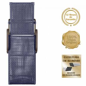 2 Cadeiras Espreguiçadeiras Piscina Corda Náutica Catar e Mesa de Centro em Alumínio Trama Orignal - Azul