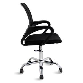 A Cadeira Diretor Giratória possui assento e encosto em tela - por isso, é muito confortável -, regulagem de altura a gás, braço de apoios fixos, acabamento em aço cromado e rodas em plástico.