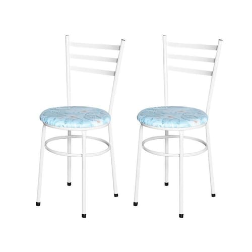 2 Cadeiras Para Mesa Epoxi Branca Assento Estampado Cor:floral Gelo
