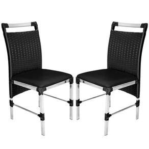 2 Cadeiras Veneza Fibra Sintética Cor Preto Alumínio Polido Com Assento Estofado