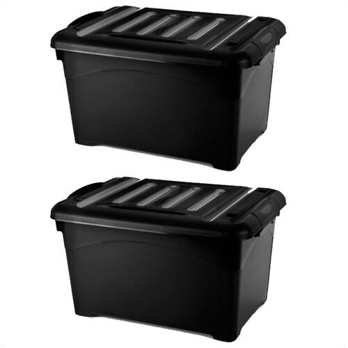 2 caixas organizadoras 25l black com travas e rodinhas