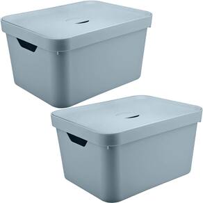 2 Caixas Organizadoras 32L Organizadores Brinquedo Closet OU Tampa Cube Azul Glacial.