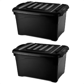 2 caixas organizadoras 65 litros preta com travas e rodinhas 2 caixas organizadoras 65l black com travas e rodinhas