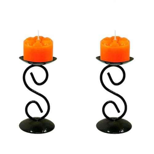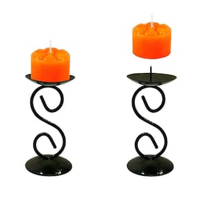2 Castiçal 1 S com Vela laranja Mesa Decoração Candelabro 2 Castiçais 1 S Com 2 velas festa laranja