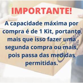 => MÁXIMO POR COMPRA É DE 1 Kit, MAIS QUE ISSO FAZER UMA SEGUNDA COMPRA OU MAIS. POIS PASSA DAS MEDIDAS PERMITIDAS