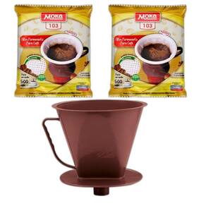 Kit 2 coador filtro moka permanente 103 + porta filtro com funil leve mais praticidade, economia e sustentabilidade para a sua cozinha com o kit coador moka 103 ideal para preparar aquele café fresquinho a qualquer hora do dia, esse kit vem com filtros permanentes e um porta filtro com funil acoplado, facilitando o uso e garantindo o encaixe perfeito na sua garrafa. Destaques do kit: - filtros reutilizáveis em feltro sintético tnt - mais economia e menos resíduos. - funil integrado ao suporte - praticidade no encaixe e no uso. - design compacto e funcional - fácil de guardar e usar em qualquer ambiente. - limpeza simples - basta descartar o pó e enxaguar o filtro. Modo de uso: Posicione o filtro moka no porta filtro. Adicione o café de sua preferência e despeje a água quente. Após o uso, descarte o pó e lave o filtro com água corrente. Pronto seu filtro está limpo e pronto para o próximo café. Especificações do produto: Filtro moka permanente 103: - diâmetro: 13,8 cm - profundidade: 15 cm - material: feltro sintético de polipropileno tnt Porta filtro com funil 103: - altura: 13 cm - diâmetro da boca: 13,5 cm - diâmetro da base: 12 cm - material: plástico resistente conteúdo da embalagem: - 2 filtros moka permanente 103 - 1 porta filtro com funil acoplado 103 Marca: Não Informado Ean: 7898749651774
