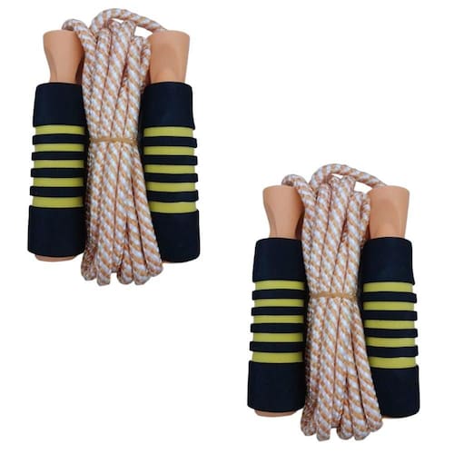 Unidades no kit: 2 Cordas laranja Material do Produto: Nylon, plástico e borracha Cor da Manopla: Amarelo, laranja e preto emborrachado Tamanho total da manopla: 13 cm Tamanho da parte emborrachada da manopla para colocar as mãos: 10 cm Cor da corda: Laranja e branco listrado Tamanho da corda: 2,70 metros ajustável