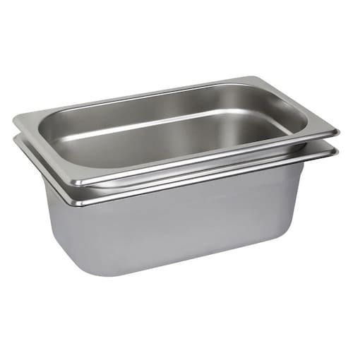 Kit com 2 cubas GN 1/4 de 65mm. Ideal para molhos e frios com padrão profissional em buffets e refeitórios.