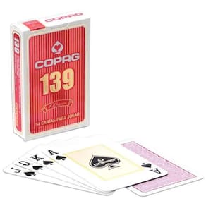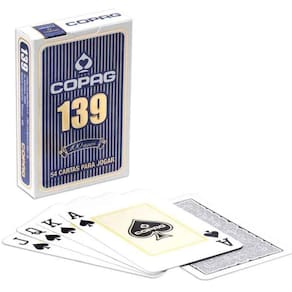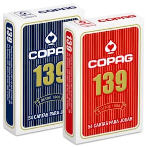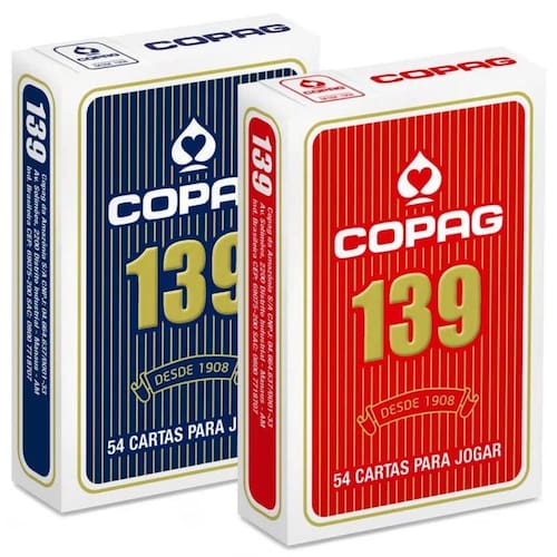 2 Baralho Tadicional Copag 139 54 Cartas Lacrado Kit com 2 baralhos 139 tradicional da Copag.Os Baralhos Copag são referência em excelência de qualidade no mundo todo. Possuem fácil deslize e são de agradável manuseio.O Baralho 139 é o mais famoso da linha de baralhos Copag e o Baralho Tradicional mais querido do Brasil. Fabricado desde 1923 e se mantém um produto de tecnologia inovadora, produzido em cartão de alta qualidade, que garante grande durabilidade e conforto no manuseio.As cartas do Baralho 139 Tradicional Copag são do tamanho Bridge Size (57x89mm) e produzidas em exclusivo cartão couché 290gr, não transparentes, atóxicas e recicláveis.Aqui na Copag Loja você encontra o Baralho 139 Tradicional disponível em naipe convencional nas cores azul e vermelhoEmbalagem: Duas caixas unitárias com um Baralho 139 Tradicional Copag na cor Azul mais um Baralho 139 Tradicional Copag na cor VermelhaQuantidade de cartas: Dois decks de Baralho 139 Copag com 55 cartas cada (54 cartas para jogar e 1 carta garantia)Tipo da carta: Couché 290grTamanho da carta: Bridge Size 57x89mmTamanho do naipe: Convencional ou Grande INMETRO Certificador: BRICS Nº Certificado: 7778/2022-BRI-TR-1 Marca: Draik