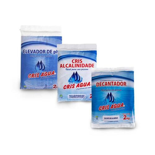 O Kit Cris Água é ideal para quem procura uma opção acessível e de qualidade assim, você garante uma piscina limpa e tratada o ano todo. Considerada a melhor opção para ajustar o pH da piscina, o Elevador de pH Barrilha leve , é um produto destinado para elevar o pH da água, é altamente solúvel e isenta de impurezas. Ideal para todos os tipos de piscinas. O Decantador Sulfato de Alumínio é indicado para decantar a água da piscina em conjunto com o Elevador de pH. A manutenção do pH correto reduz a quantidade de cloro necessária à desinfecção da piscina.