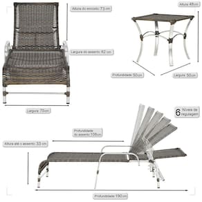 2 Espreguiçadeira Catar E 2 Mesa Garden Alumínio E Fibra Pedra Ferro