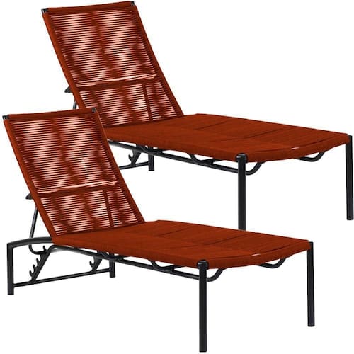 2 Espreguiçadeira Corda Náutica Alumínio Com Regulagem Trama Terra Cota - Preto