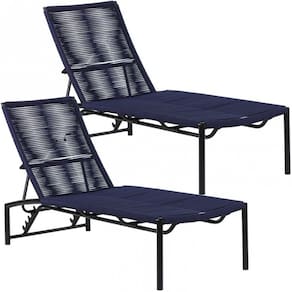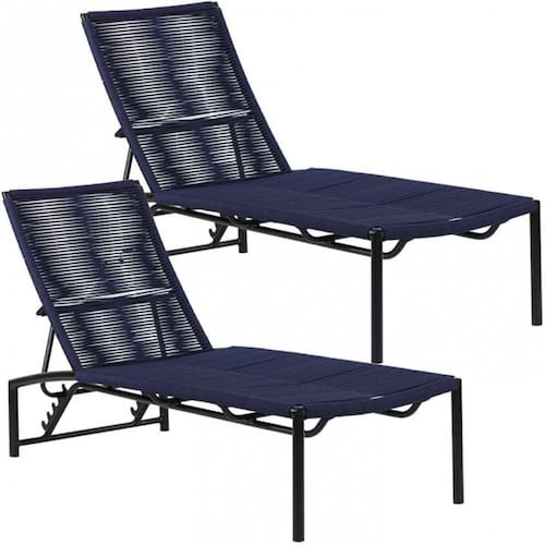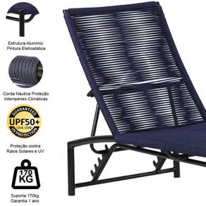 2 Espreguiçadeira Corda Náutica Alumínio Piscina com Regulagem Trama - Azul
